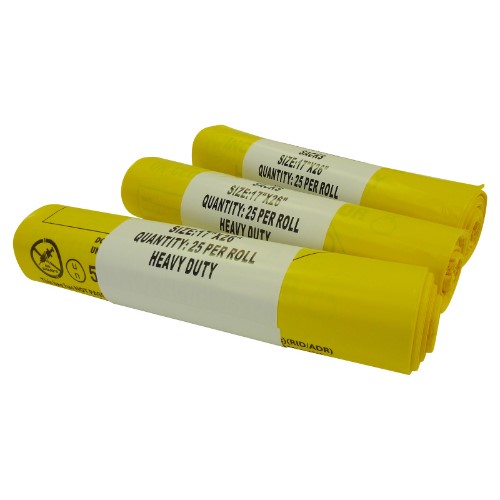 Clinical waste bags for the disposal of clinical waste for incineration. Produced using co-extrusion technology, star-sealed and printed according to UN requirements (UN3291). Capacity: 20 litres / 5 Kg. Size: 280 x 430 x 660mm. Packing: 25 bags per roll/ 8 rolls per case.