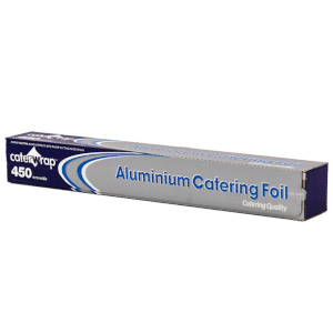 Aluminium foil for lining roasting and baking trays, or covering and wrapping food to keep it warm for longer. Supplied in a handy cardboard box complete with a cutter blade. 450mm wide x 75m length.