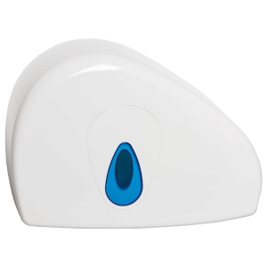 Mini Jumbo Toilet Roll dispenser with stub roll feature to prevent any risk of running out. Ideal for washrooms with medium to high usage. Clever reversible spigot fits different roll-core diameters. Suitable for perforated or non-perforated rolls.