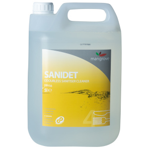 Food safe concentrated cleaner sanitiser. Tested to EN1276. Excellent cleaning power on all food types including animal fats, vegetable oils, starches and proteins. Sanidet is non-tainting and suitable for food contact surface. For areas requirng a 2-stage clean, Sanidet can be used for both cleaning and disinfecting steps. Dilute 1:40 for general cleaning, 1:80 for light duty cleaning.