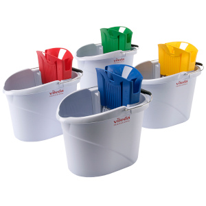 Small and compact mopping system, ideal for cleaning smaller areas. Kit contains: 1 x bucket and wringer, 1 x ultraspeed mini pad, 1 x ultraspeed mini mop frame. (Ultraspeed mini telescopic handle sold separately). Gearlever press wrings maximum moisture out of mop for high speed drying. Colour coded - Blue.