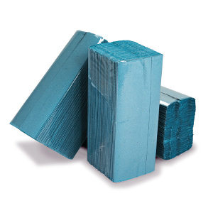 Blue C-fold hand towels in a 1 ply tissue which is strong and absorbent, great for hand drying or wiping spills. Individually folded and packed in sleeves for easy refilling. Fits most hand towel dispensers.