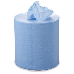 Blue centrefeed rolls are ideal for everyday wiping tasks when you need larger amounts of absorbent paper for wiping up spills, excess residues or drying hands. Each roll has easy tear perforations and a removable core. Embossed option gives enhanced absorbency.300m length.