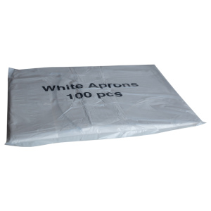 White 8 micron disposable polythene aprons which are available in flat dispenser type packs. Provide a cost effective way of protecting clothes from fluid and bacterial penetration during tasks, helping to reduce contamination risks. Available in standard (PW9301), medium duty (PW931) and heavy duty (PW933) Size: 27 x 42" / 69 x 117cm approx.