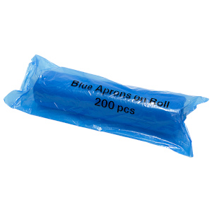Blue disposable polythene aprons supplied on a roll. Provide a cost effective way of protecting clothes from fluid and bacterial penetration during tasks, helping to reduce contamination risks.