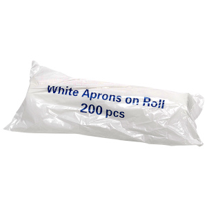 White disposable polythene aprons supplied on a roll. Provide a cost effective way of protecting clothes from fluid and bacterial penetration during tasks, helping to reduce contamination risks.